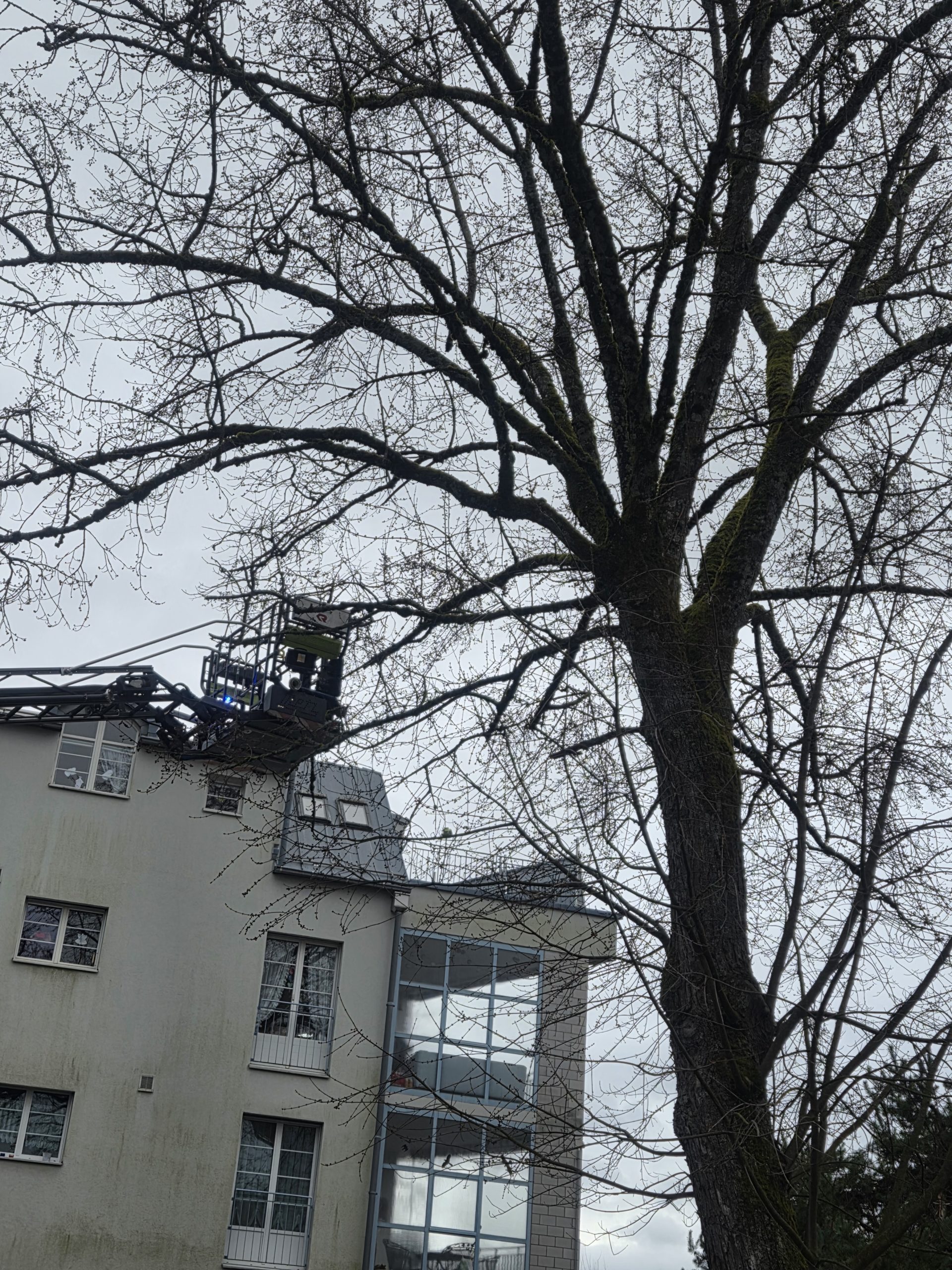 Ein abgebrochener Ast hing in der Baumkrone und stellte eine Gefahr für den Strassenbereich dar. Der Ast wurde mithilfe der Drehleiter kontrolliert entfernt und die Gefahrenstelle beseitigt.